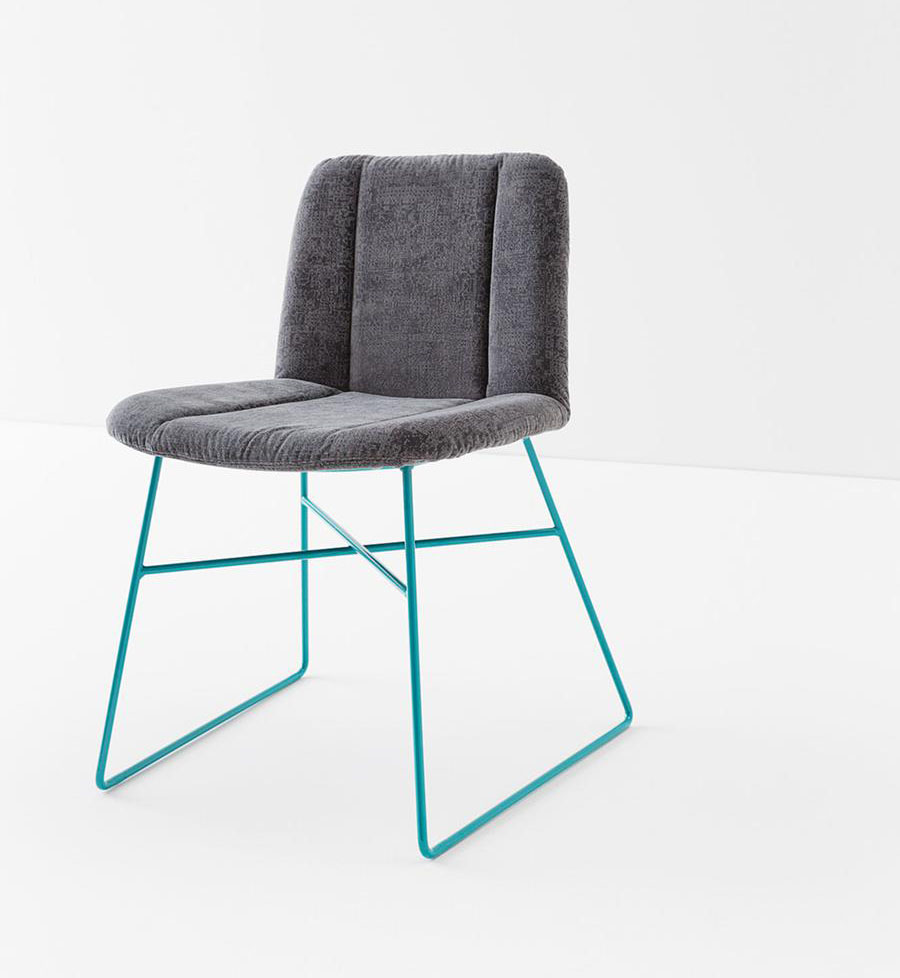 Sa structure est en métal laqué avec une assise et dossier en tissu basic