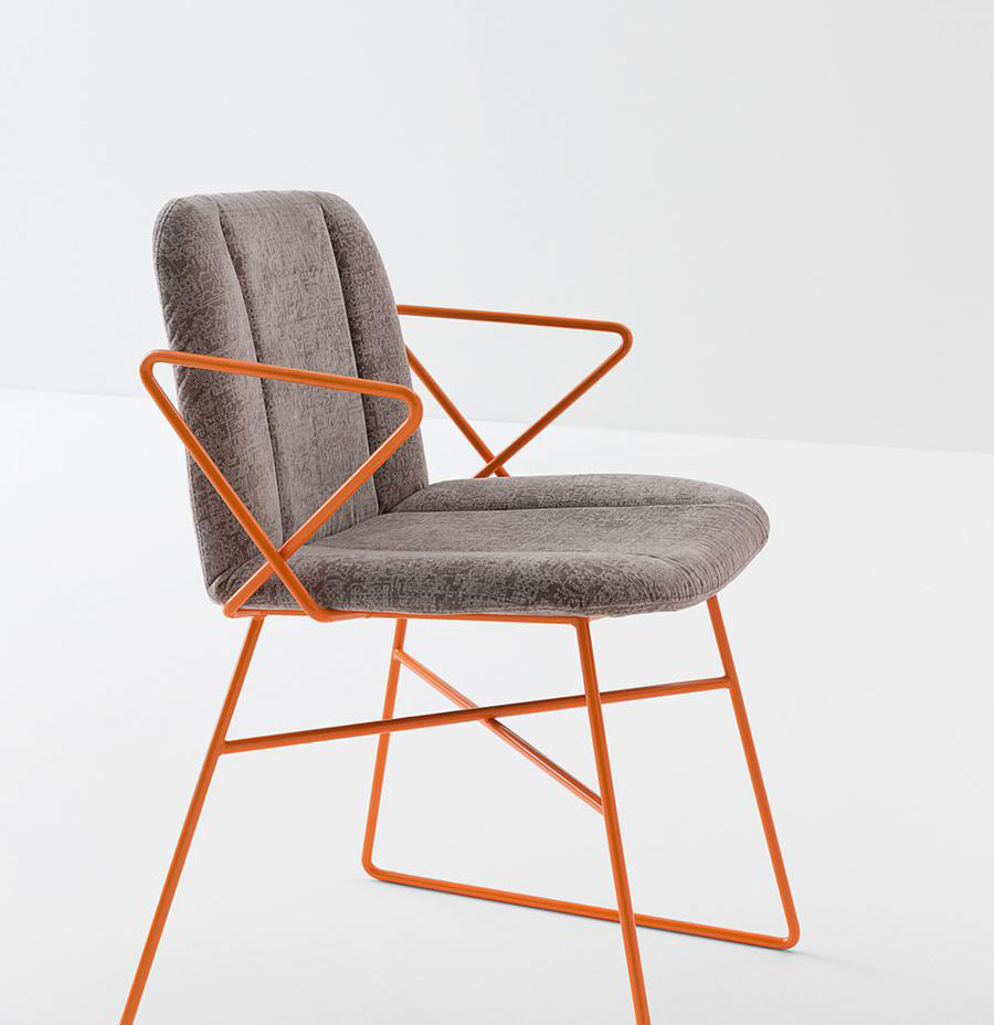 Sa structure est en métal laqué avec une assise et dossier en tissu basic