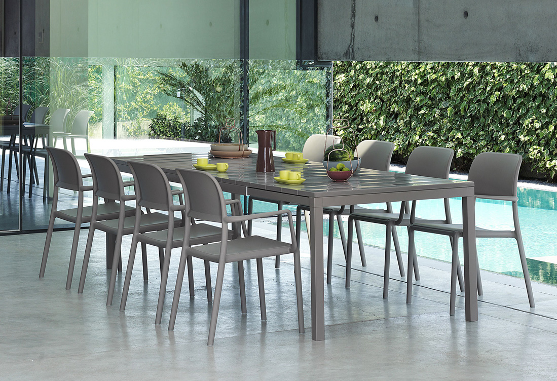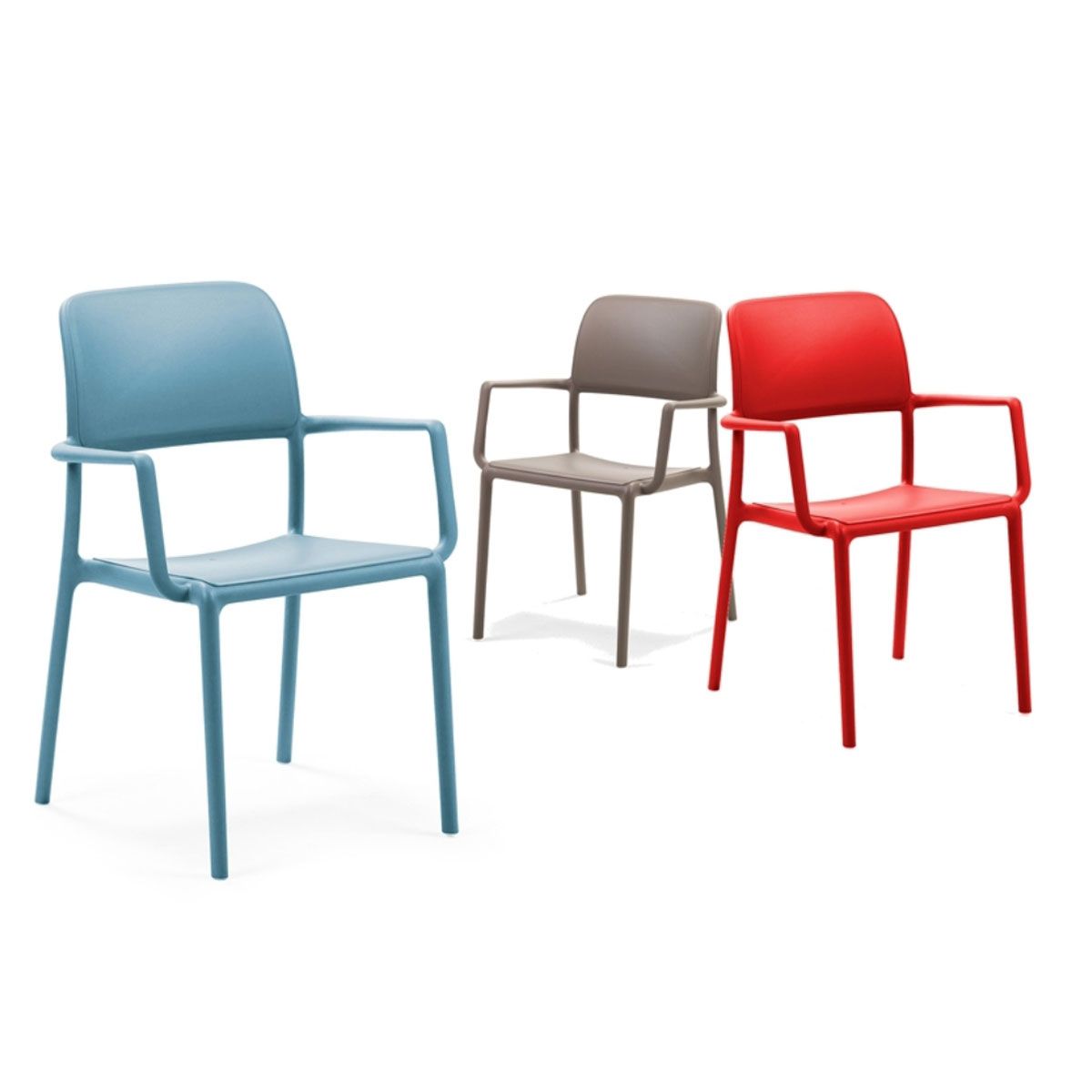 Fauteuil empilable, en polypropylène fiberglass traité anti-uv et coloré dans la masse. Avec embouts anti-dérapants. Effet mat.