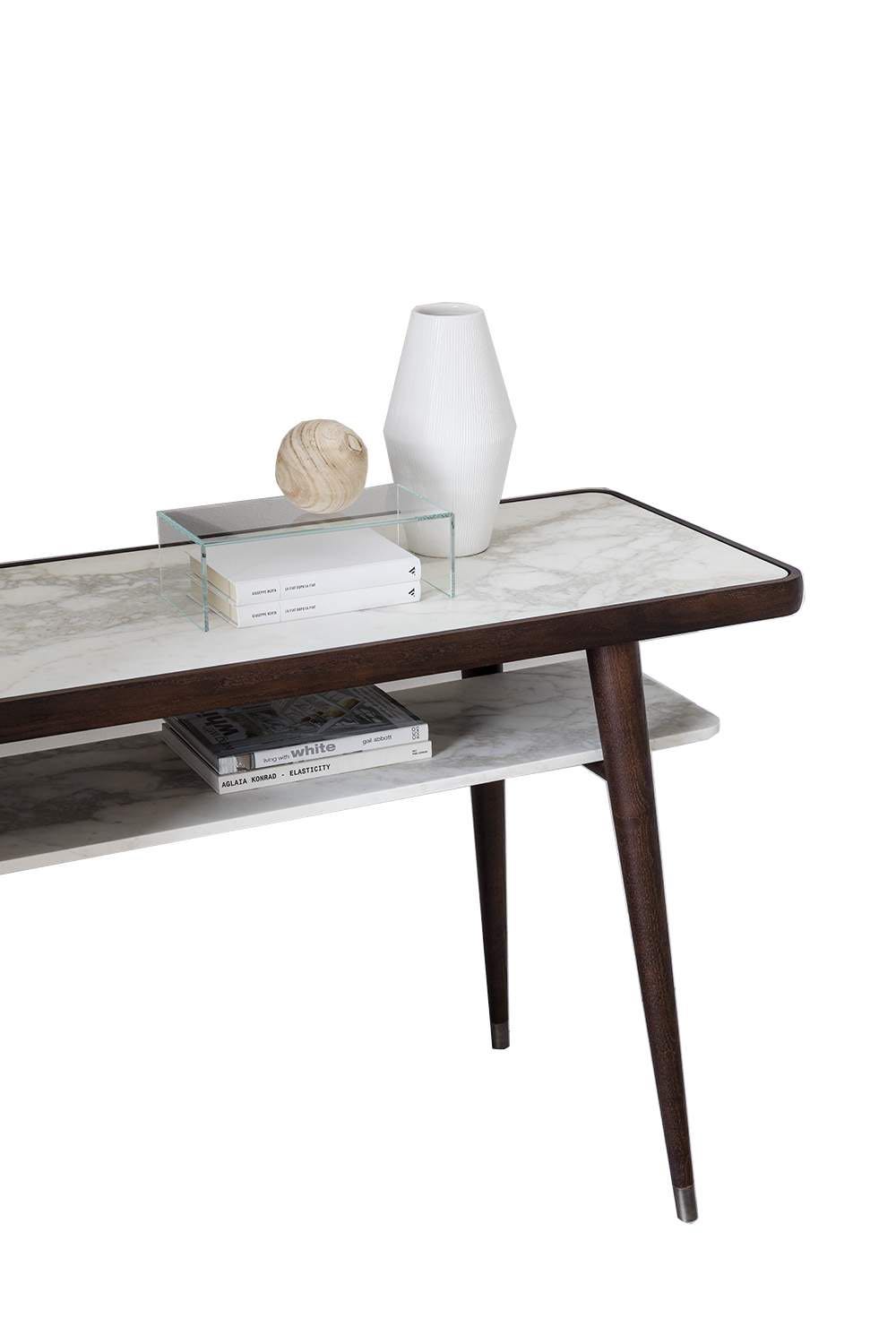 Console en frêne massif avec étagères en verre ou marbre.