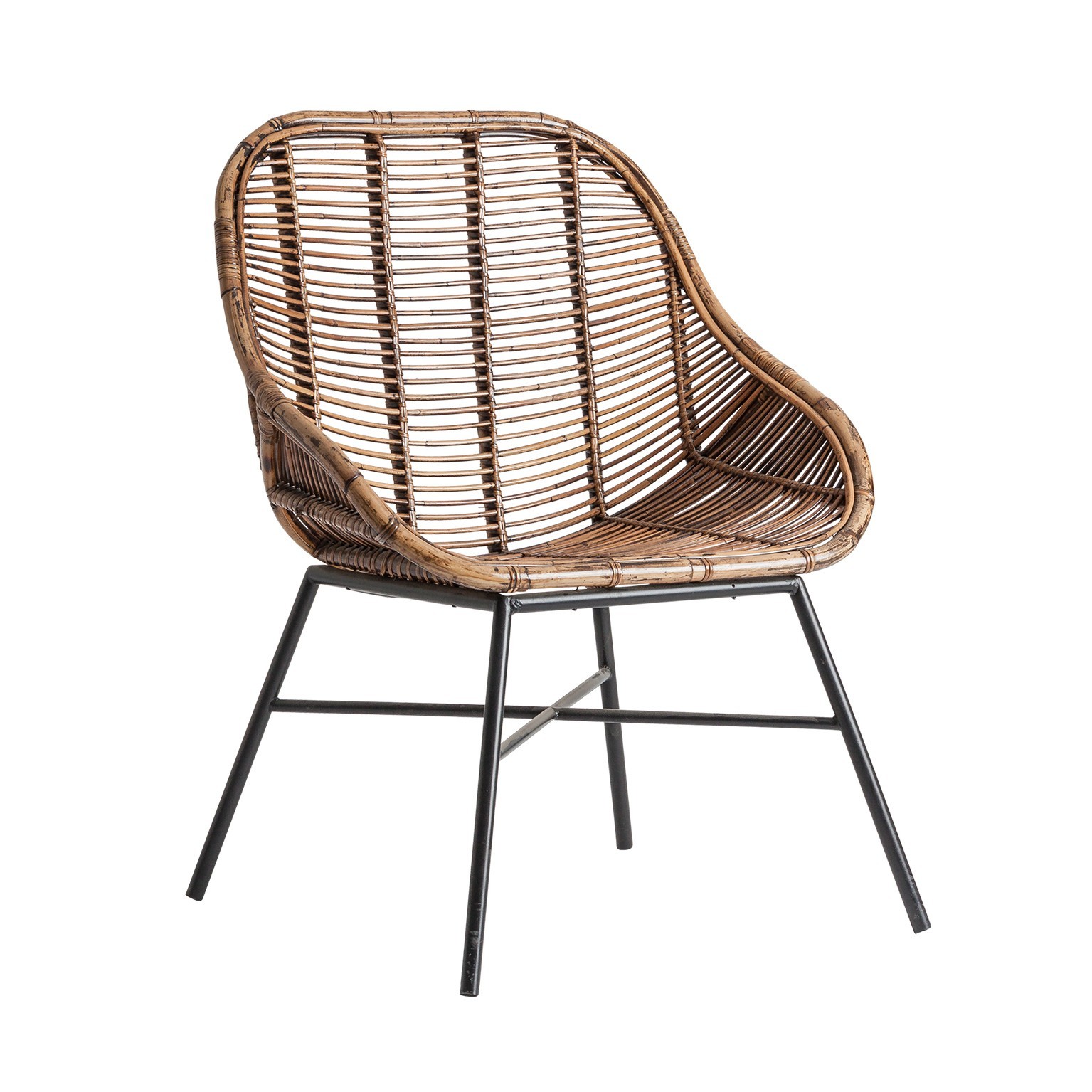 FAUTEUIL BENIN, COULEUR MARRON ANTIQUE, STYLE VINTAGE. FABRIQUÉ EN ROTIN, COMBINÉ AVEC FER. PRODUIT DÉMONTABLE
