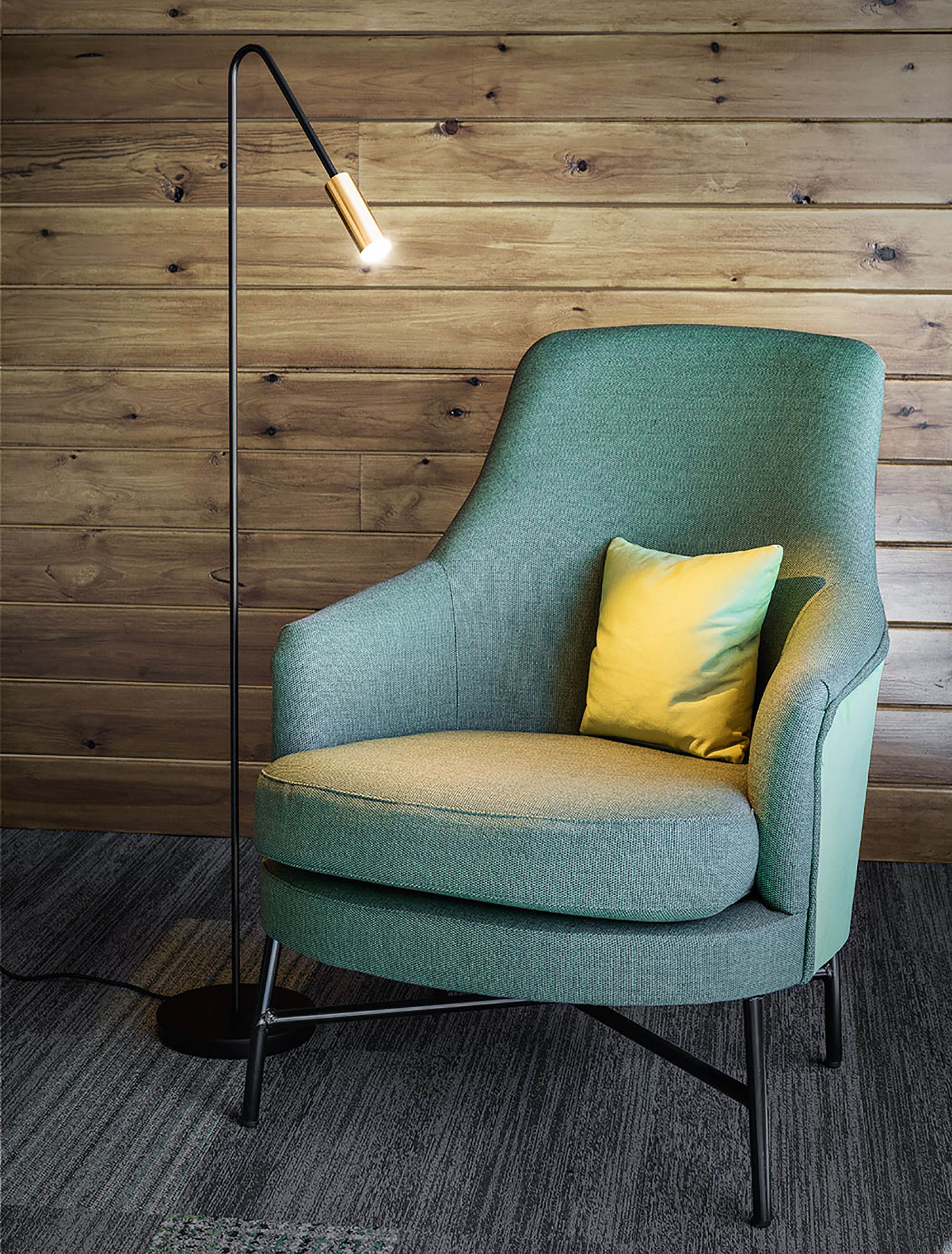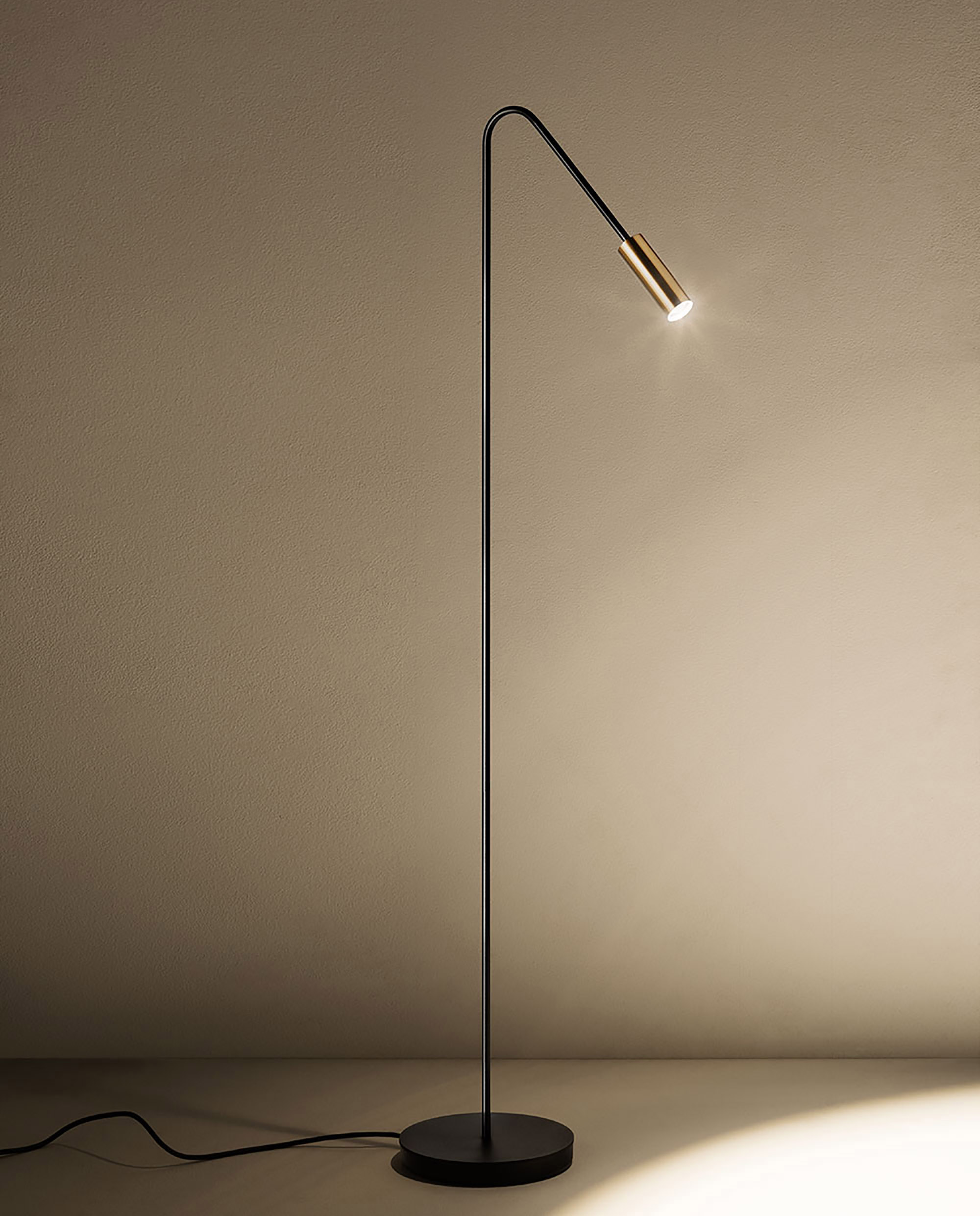 Lampadaire avec une tête cylindrique en aluminium.