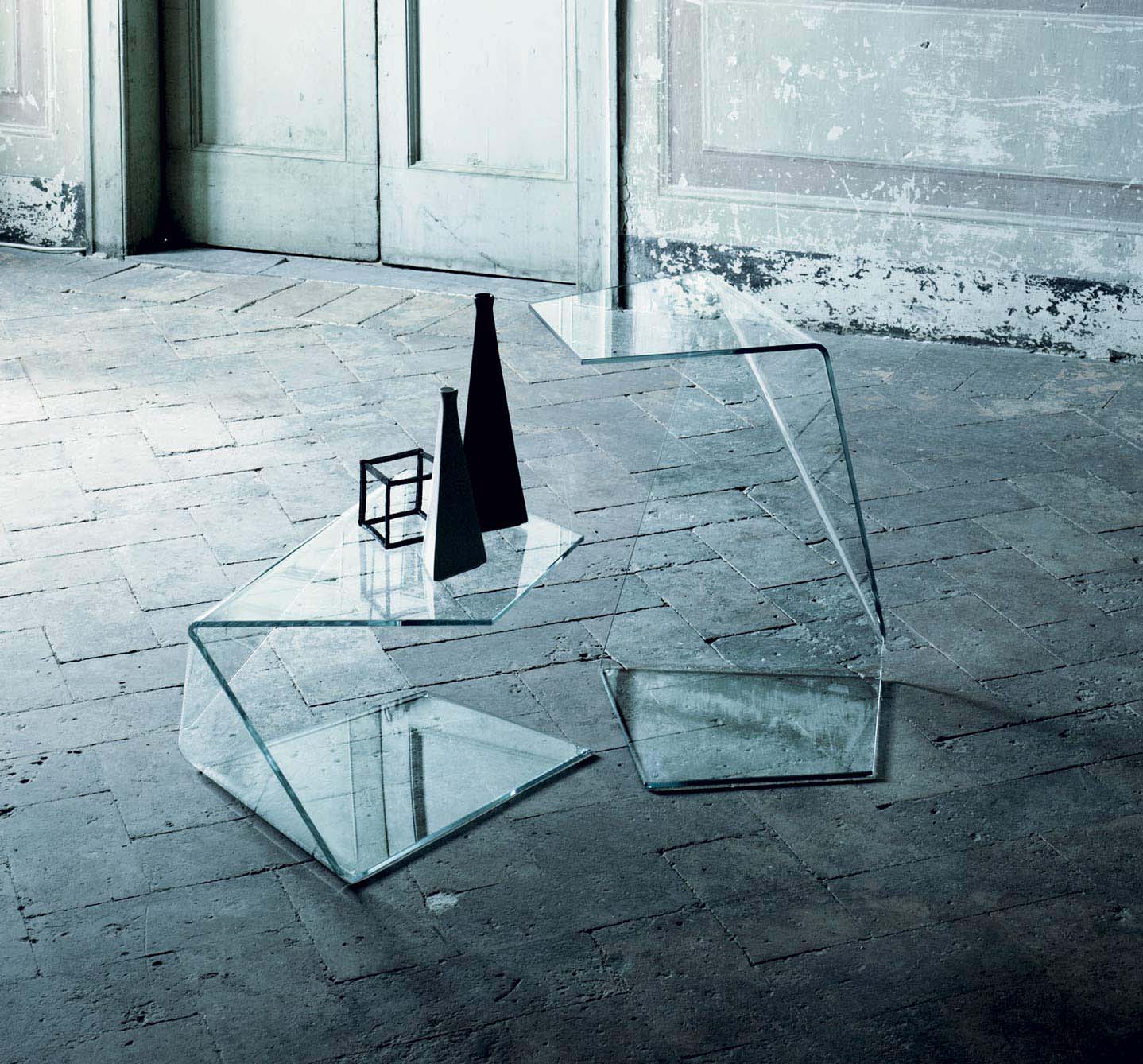 Tables basses en cristal transparent extralight.