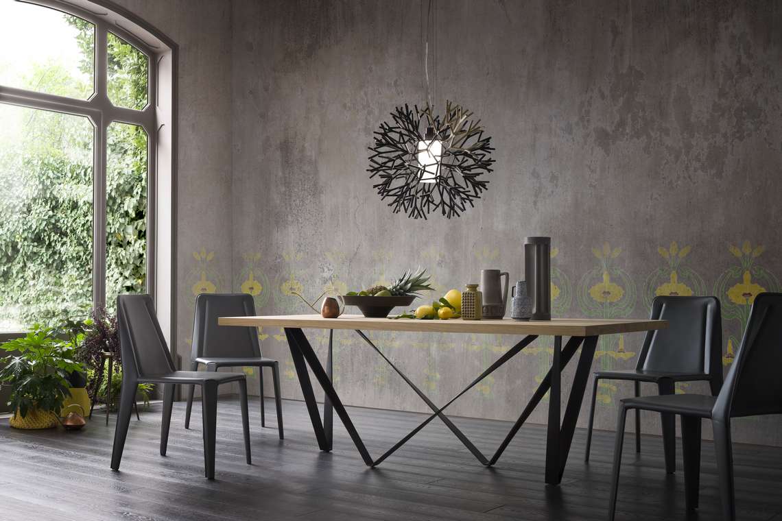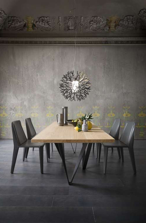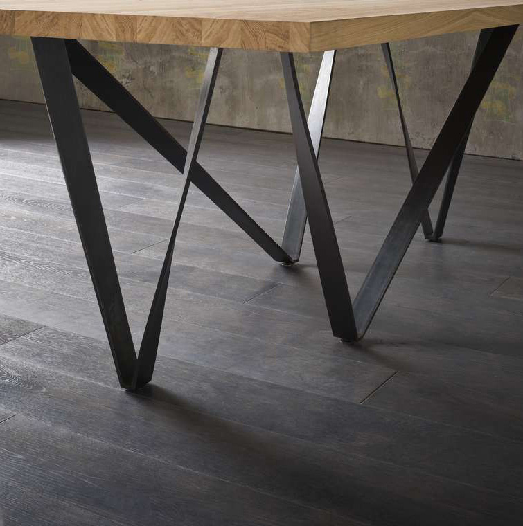 Les pieds de cette table sont fait en acier et le plateau en bois